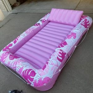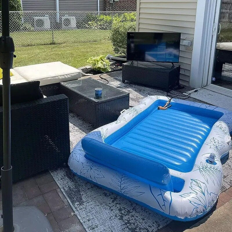 "I've been using it on my patio every day since I received it. It's super comfortable, doesn't stick to your skin even when it's hot, and it stays inflated all day long. "