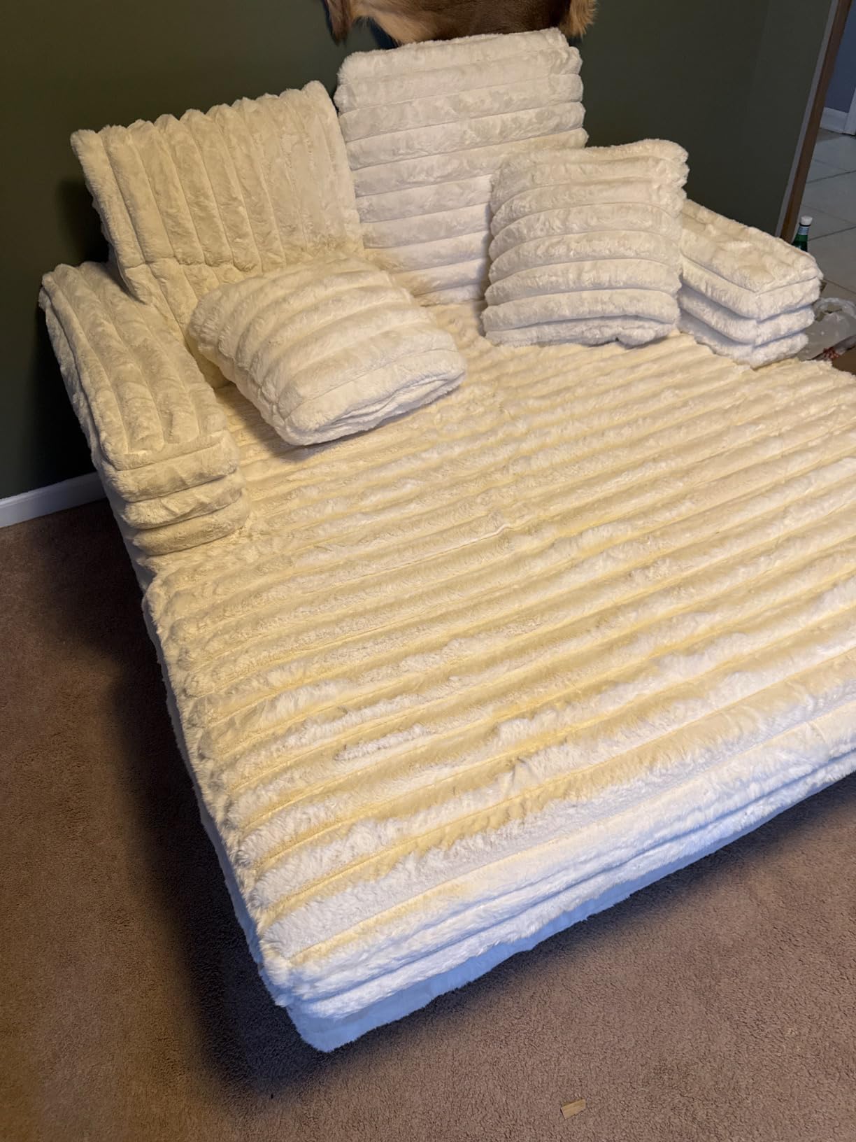 Wrapped in soft striped faux fur fabric and featuring a 5.9 inches dense sponge cushion, it offers a plush, cloud-like feel that melts away stress.
