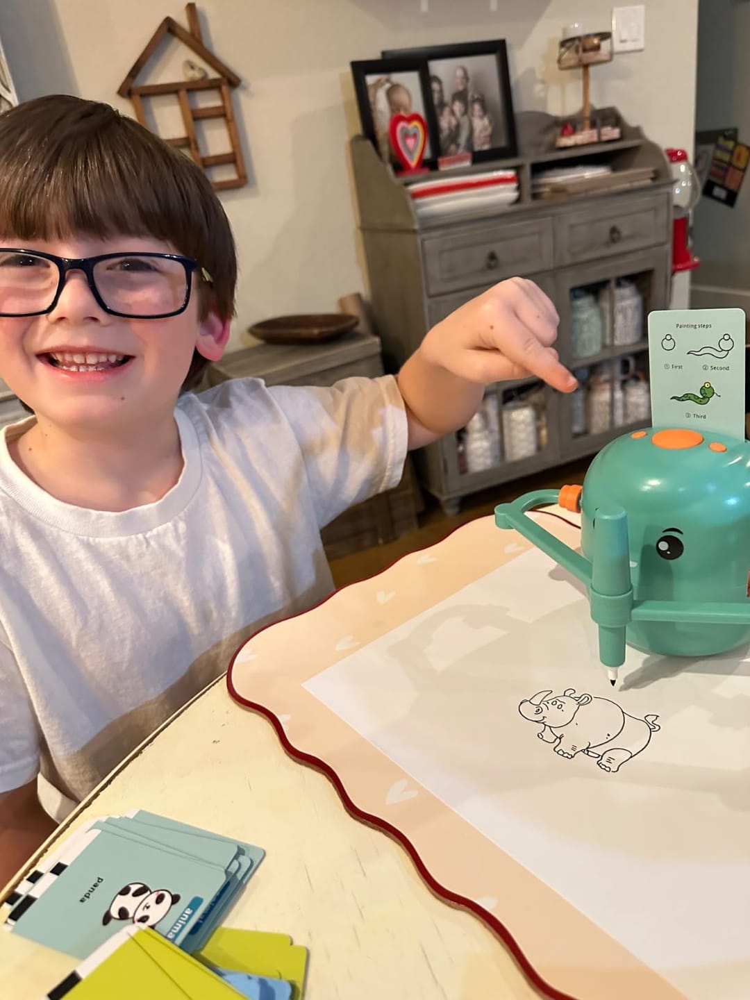 My son has been asking for one of those for over a year, I finally decided to try it, they are a little pricey and I really didn’t think it would work. We were amazed and so impressed by this little drawing robot! The catchy little songs it plays while drawing makes it even better!! Easy to use and works great!!!